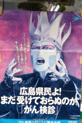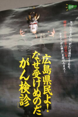 駅に戻る途中見かけたポスター。なぜ閣下は広島県民の健康が気になる?