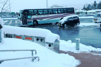6時半、目覚まし使うまでもなく起床。7時過ぎにチェックアウトして駅に向かう。駅で「かきしゃもじ弁当」購入。前回買えなかった(選択ミスだけど)ので。バス乗り場で食べるが雪も降って来て寒い。ちょっと無茶だったかな。