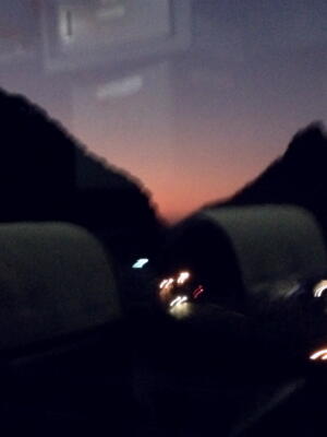 5時半にホテルを出て6時10分の高速バスで福岡に。朝焼け。