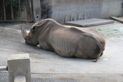バスで福岡市動物園に。サイ。
