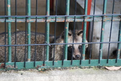 夜行性なのに朝から元気なタヌキ。