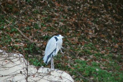 うらやましそうに?見るアオサギ。