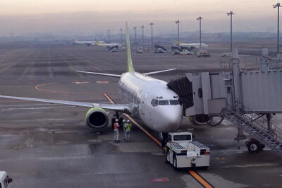 先週よりちょっと遅め6時30分新宿発の空港バスで羽田に。今日はSNAなので第2旅客ターミナル。7時着。SNAカウンターで搭乗券発券してまだ時間に余裕があったので定食屋「魚米処 旬」でほっけ半身定食。しかし飯食ってる間に保安検査場の列が凄い伸びてた。油断した。