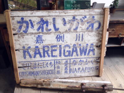 旧駅標。霧島温泉駅は昔は霧島西口だったのか。