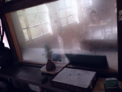 事務室の窓。事務室側はちょっとした博物館。