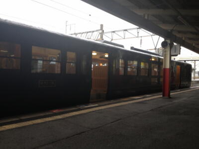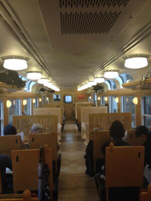 車内。これも水戸岡鋭治さんデザインだっけ?