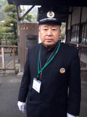 名誉駅長(3代目)の篠原さん。