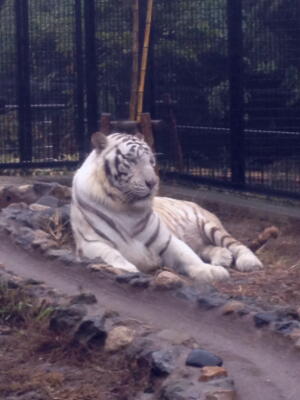 雨なのであまり動物が外に出てない。ホワイトタイガー。
