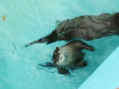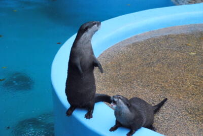 人間好きなのかやたらと接近する。でも「噛まれるから触ろうとしてはいけません」の看板。「天才志村どうぶつ園」でコツメカワウソをローラがペット扱いする企画やってるしなあ。子供は触ろうとするよなこれ。