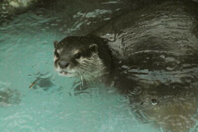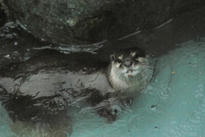 コツメカワウソは雨でも元気に出て来てくれた。