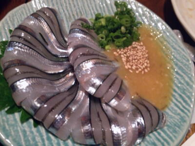 flyingvtさんの車で鹿児島中央駅近くに。屋台村には入れなかったのでその隣の「大野屋」に。キビナゴ。