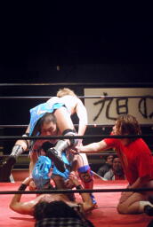 ちょっと回転が足りずに観客ひやり(左写真)、カバー、カウント2。