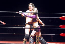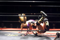 美央エルボー、ウラカン・ラナに行くがエディはキャッチ(左写真)、