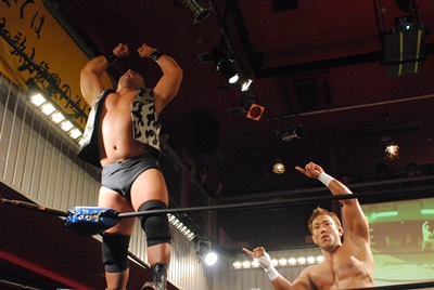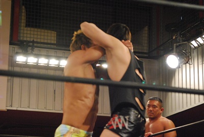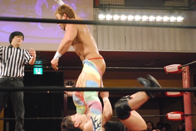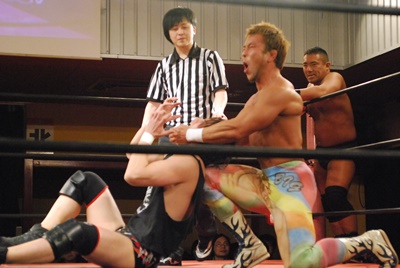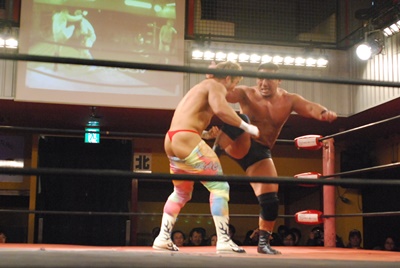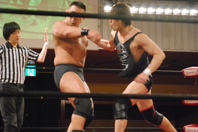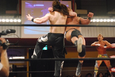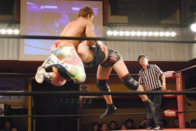 チョップの打ち合いから大家バックドロップ(右写真)、カウント2。