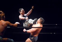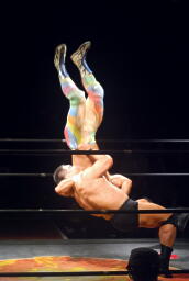 コーナーに上ってミサイルキック(右写真)、新松田にタッチ。