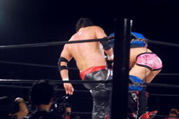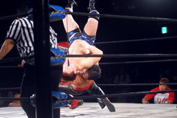 入江がコーナーに上ってBIG"G"BANGフリップ(右写真)、義人がカット。