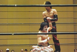 イサミガットショット、エルボー(左写真)。小仲は地獄突き。