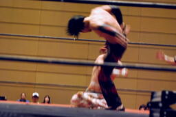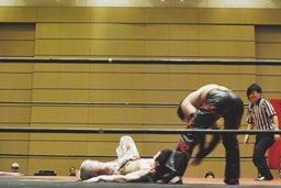 ロックアップ、小仲バック取る、イサミ切り返す、小仲腕をひねる(右写真)、イサミ切り返す。
