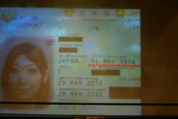 いよいよ年齢公開の儀式。10カウントゴングが鳴らされ、パスポートがスクリーンに大映しに(左写真)。