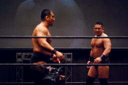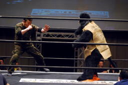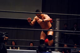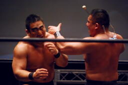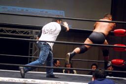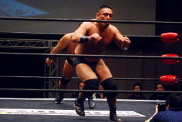 最初のウェポンは岡野隆史。元IWAということで新松田側(右写真)。