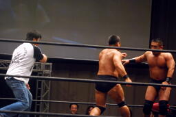 カバーは新高木が(右写真)。しかしカウントは2。ミン退場。