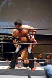 忍首固め、石川引っこ抜いてボスしけてるぜ(左写真)、カバーは義人がカット。入江が義人を場外に。