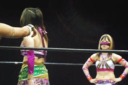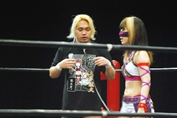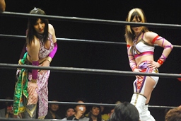 美央は真琴姫をリングに呼び込む(右写真)。