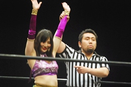 松井レフェリーの判定は真琴姫の勝利(右写真)。