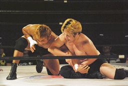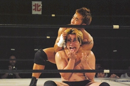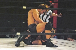 大家切り返してクロフェースに(左写真)、諸橋ひっくり返してエビ固め、カウント2。