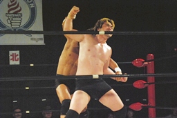 大家バック取る、今度は諸橋がワキ固め(右写真)。