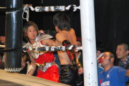 イサミと凛音は場外でエルボーの打ち合い(右写真)。