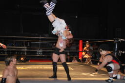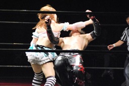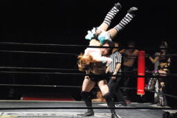 凛音美央にドロップキック(右写真)、大家凛音にスピアー。