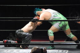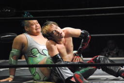 イサミ張り手、ボディスラム(右写真)。5分経過。