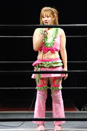 チェリー「先日の記者会見で今日、重大発表すると言っていましたが、みなさんに聞いてもらいたいことがあります。今年、年齢を公表しまして、プロレスが大好きで、今までずっとプロレスのことしか考えてこなくて、プロレスだけ一所懸命やってきたんですけど、この度、私チェリーは・・・英語を習い始めました!」