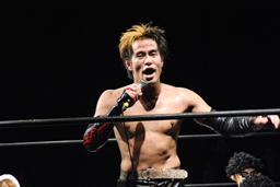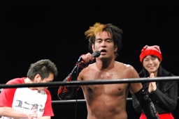 イサミ「これからもエースとして、楽しく、激しく、辛く、真面目にやっていきます!行くぞー!3、2、1、行くぞユニオン!」(右写真)