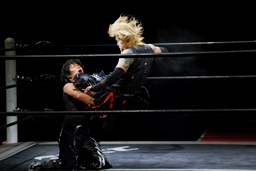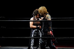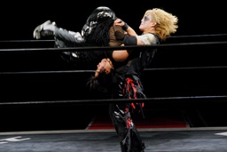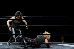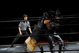 怨霊は怨霊ドライバー、MIKAMI切り返して逆さ押さえ込み、怨霊立ち上がる、MIKAMIデュランダル(右写真)。