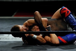 MIKAMIキャッチして倒すと上になる、臼田ガードポジション(右写真)。