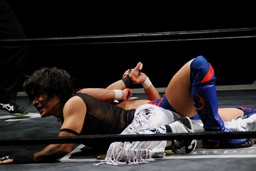 臼田アームロックに(右写真)、MIKAMIロープ。