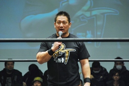 18時35分、「司会」の井上マイクとあべ由紀子がリングに上がっていよいよ大会スタート。今日は選手を高木軍と亜門軍16名ずつに分けての対抗戦。高木軍は高木三四郎、HARASHIMA、ヤス・ウラノ、MIKAMI、男色ディーノ、大石真翔、坂口征夫、DJニラ、彰人、遠藤哲哉、木イサミ、諸橋晴也、大家健、福田洋、風戸大智、X。亜門軍は飯伏幸太、伊橋剛太、石井慧介、高尾蒼馬、入江茂弘、アントーニオ本多、佐々木大輔、火野裕士、星誕期、マサ高梨、佐藤光留、中澤マイケル、松永智充、竹下幸之介、ゴージャス松野、藤原喜明(右写真)。