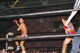 華名マイケルの胸板にキック(右写真)、マイケル「アツくなって来たぞー!」