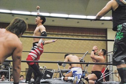 高木三四郎、大石真翔、彰人(チーム城)vs HARASHIMA、ヤス・ウラノ、妻木洋夫(ウラシマヒロオ)