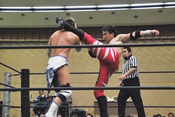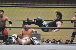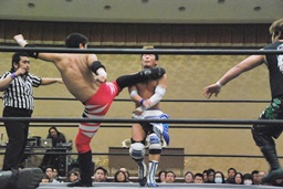 彰人低空ドロップキック(右写真)。