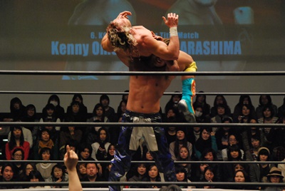 HARASHIMAケニーをコーナーに上げて雪崩式リバースフランケンシュタイナー(右写真)。