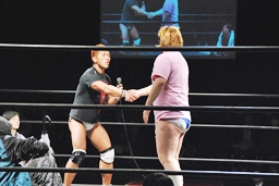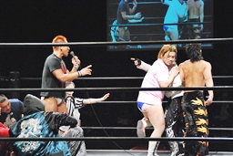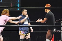 MIKAMIはマイケルにストンピング打ち込むとさっさと控室に。マイケル「お前らおかしいぞ!接待しろよ!」