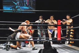6vs1の変則ハンディキャップマッチがスタート(右写真)。