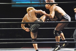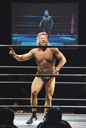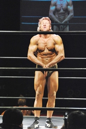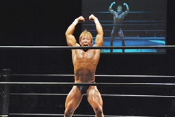ボディビルマッチは諸橋有利かと思ったがケニーも全く引けを取ってない(左写真)。