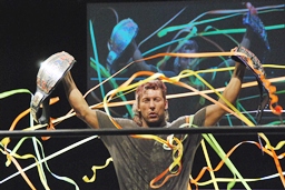 ポージングスタート(左写真)。曲は「ヤングマン」。