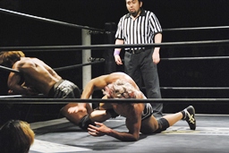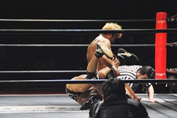 諸橋潰してカウント入る(左写真)、カウント1で松井レフェリーは諸橋の勝利を宣告。