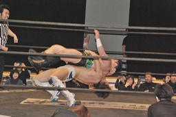 ハーフネルソンスープレックス(右写真)、カウント2。