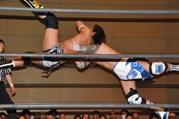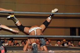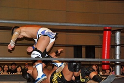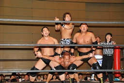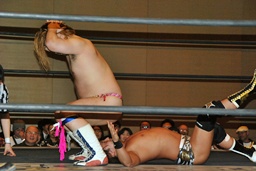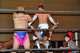 ディーノリングイン、平田を凌辱(左写真)。高木と大鷲はエプロンから降りる。ひどい。